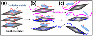 (Carbon 2010, 48, 3834; J Mater Chem 2011, 21, 9271; Compos Sci Technol 2016, 125, 108) . 4. 高分子/氧化石墨烯复合材料熔融加工过程中的物理化学变化 氧化石墨烯(GO)不仅常做为制备石墨烯复合材料的原料广泛使用,而且其本身也是一种良好的增强材料。在以GO为起始原料的各类聚合物复合材料,在熔融加工过程中发生的GO原位还原反应会导致材料结构、组成发生变化,会使有效调控此类材料或制品的结构及性能更为困难。我们期望从此类复合材料在传统熔融加工过程发生的GO原位还原入手,一方面研究决定GO原位还原的各种影响因素及可能机理,同时研究因GO原位还原引起材料不同层次聚集态结构及结构演化规律的变化,较全面地理解此类复合材料熔融加工过程中发生的化学、物理变化,为调控GO基复合材料或制品的组成和结构、形成可控制备特定性能GO基复合材料的新技术提供基础数据。