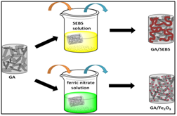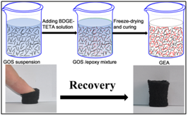 (Adv Mater 2013, 25, 2980;ChemNanoMat 2016, DOI: 10.1002/cnma.201600127.) 2. 高强石墨烯复合气凝胶制备与应用 将石墨烯组装成三维的气凝胶,在能源、环境、航天航空、建筑等领域具有广阔的潜在应用前景。本课题组在石墨烯气凝胶方面的工作,主要集中于石墨烯与高分子相结合,制备具有特定物理功能(如导电、绝热、隔音、油水分离、重金属吸附等)的同时还具有良好力学性能(如可压缩、高回弹等)的高强度气凝胶,以期满足实际应用的需求。
