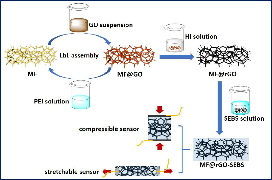 4. Cheng L and Feng JC*. Facile fabrication of stretchable and compressible strain sensors by coating and integrating low-cost melamine foam scaffolds with reduced graphene oxide and poly (styrene-b-ethylene-butylene-b-styrene). Chem. Eng. J. 2020, 398, 125429